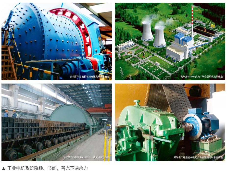 ▲ 公司自主研制的7000kVA~30000kVA容量等级的超大容量高压变频打破国外技术垄断,广泛应用于火电机组节能改造、钢铁行业节能改造、特大容量电机高压变频软启、双变频器并联运行等高端领域